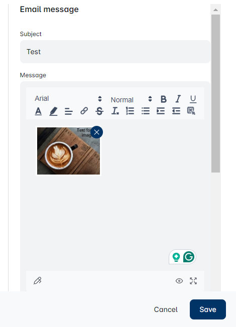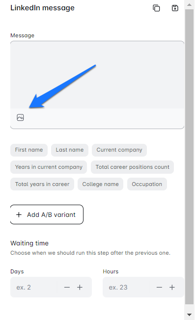 - For email messages, choose where to insert your image or GIF. For LinkedIn messages and InMails, Leapforce will place your personalized images and GIFs at the bottom of the message.