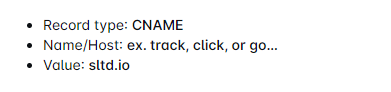 - Since we’re creating a subdomain, you need to use the prefix you’ve created (e.g., track, click, go, etc.) and paste it into Leapforce under the Your subdomain field.